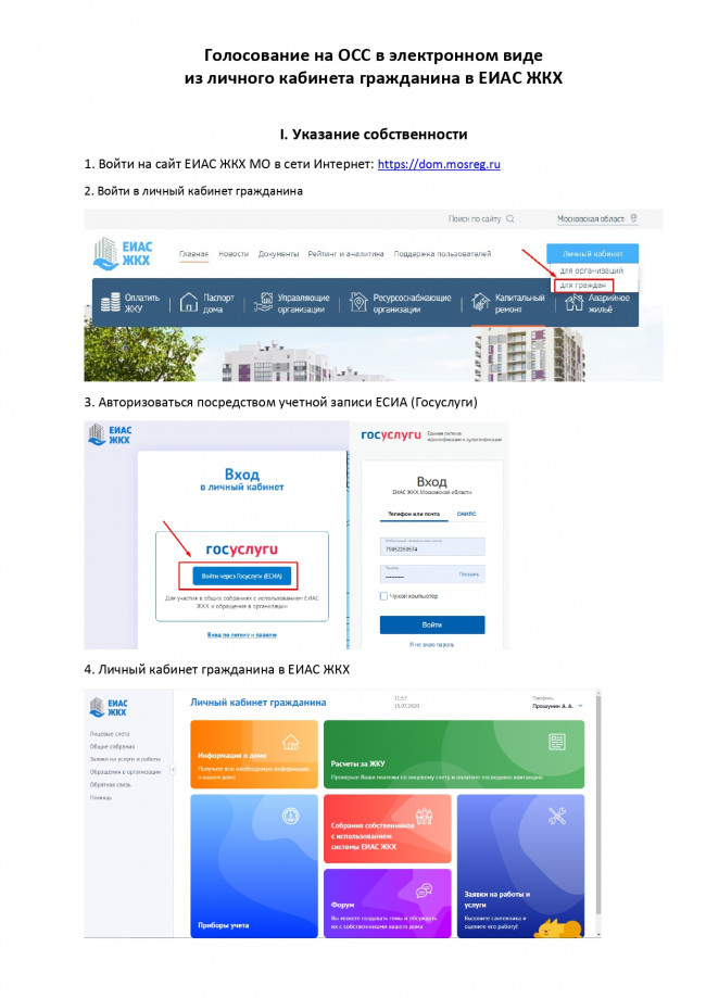 Прием решений собственников по вопросам повестки дня производится путем голосования в личном кабинете гражданина ЕИАС ЖКХ МО (https://dom.mosreg.ru) или путем личной явки к администратору общего собрания.